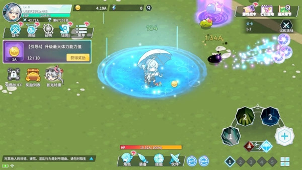 1、进入后可以看到角色都在自动战斗,不需要玩家手动释放各类技能