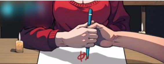 8、接着滑动桌子两次,再取笔拧开两个螺丝,输入下图里的符号号码,就能驱散笔仙了。