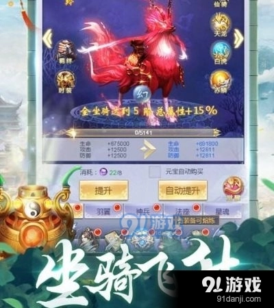 4灵宠,灵宠无论是升阶还是升级,都能提升玩家的战力。升阶需要使用宠物进阶丹来实现,升级则只需吞噬不需要的装备即可。