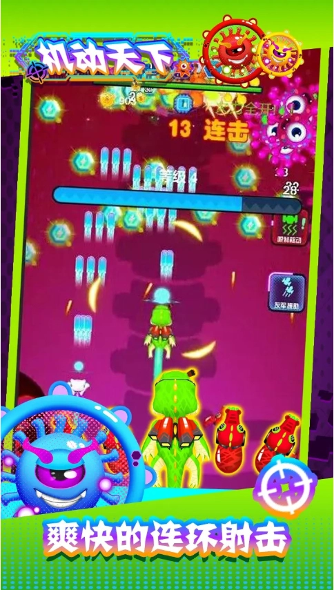 《机动天下》拥有华丽酷炫的画风背景,独特的激情射击闯关玩法让热血感倍增,众多精心设计的关卡绝对不会让你失望,快叫上朋友们一起体验《机动天下》吧!