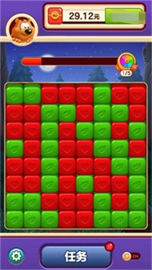 小熊点点消里,消除方块达成目标就能赚钱领红包。在闯关过程中,把不同颜色的方块全部清除,能形成更多消除组合。要留意每个关卡的不同挑战,消除的时间和策略都由你决定,这样才能最大化获取积分奖励。