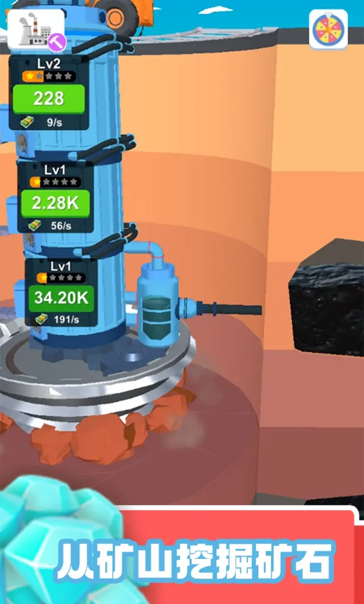 2、您能够对采矿设备进行升级来提升效率,还可以解锁新的设备去采集不同种类的矿石,而高级矿石的价值会更高。