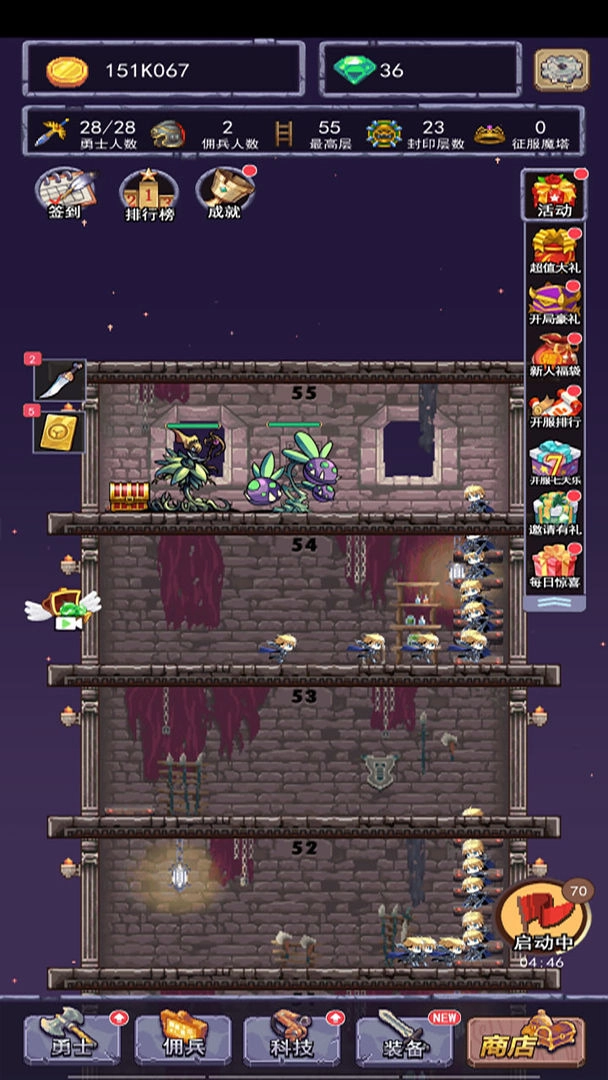 3、强化佣兵,挑战输出极限,快速战斗,尽情享受爬塔战斗带来的独特体验吧。