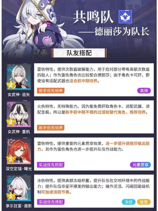 3、玩家能够组建由三人构成的小队,依据敌人的属性,像物理、火焰、雷电、冰、量子、虚数、星尘这些类型来进行搭配。