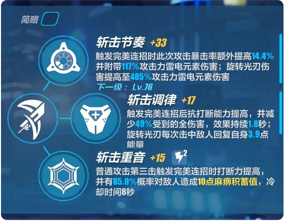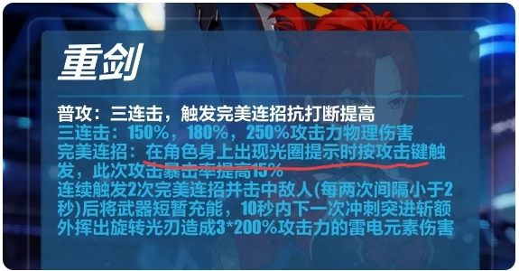所以深红的攻击最好遵循一定节奏,在身上光圈重合时按下攻击键,每次普攻的间隔大概在一秒左右;要是看不清光圈,也可以留意音效——会有特殊音效提示完美连招的触发时机。建议不要一直按住攻击键,而完美连招能带来这些效果: