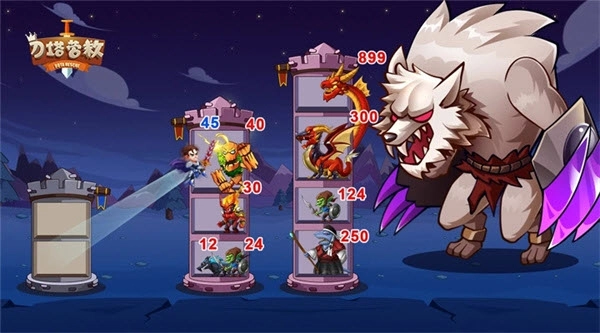 这是一款人气颇高的战略游戏,有大量的高塔可供挑战,你需要不断攀登高塔来对抗BOSS,与凶猛的巨龙展开战斗,最终救出公主。每一层塔的BOSS都拥有独特的属性,你得合理分配自身的战力,才能成功突破关卡。