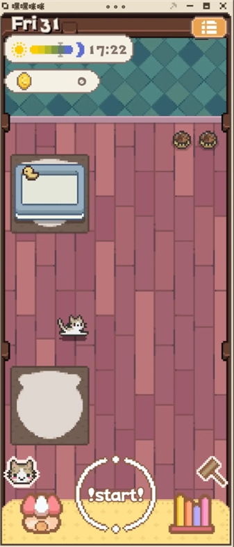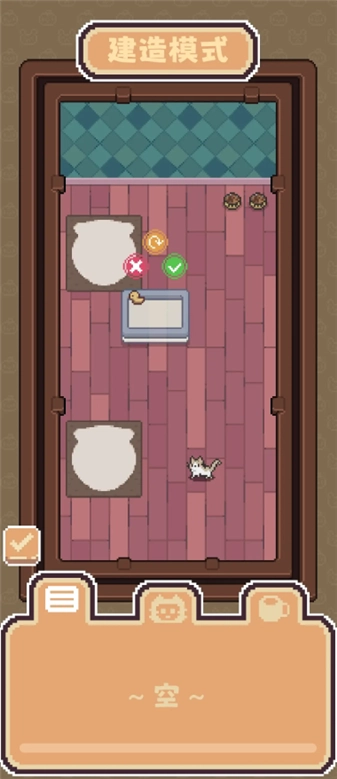 1、玩法层面,除了猫咪养成外,还加入了房间装修的内容,玩家可通过专注状态和养猫过程来获取资源。