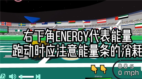右下角的ENERGY标识代表能量,跑动过程中要留意能量条的消耗情况。
