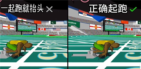 大家普遍认为,起跑时最好的做法是在最初几步压低身体重心,优先保证步频,这样能更顺畅地过渡到途中跑阶段。