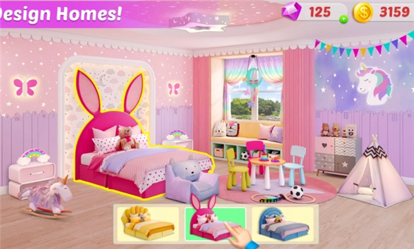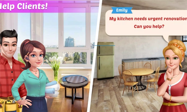 1、在房屋设计的环节里,玩家需要依据客户的具体需求,对客厅、卧室、厨房等不同场景进行改造。