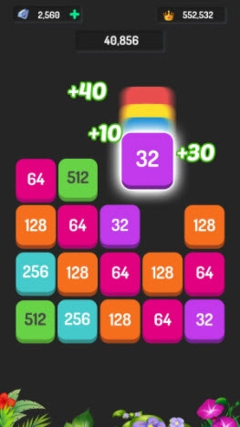 2.当两个相同的数字相遇时,它们会合并成一个更大的数字,数字的数值越大,所能获得的分数也就越高。