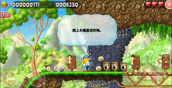 6、冒险途中藏着不少奖励,只要跳上木桶并将其破坏,就能获得里面的宝藏;