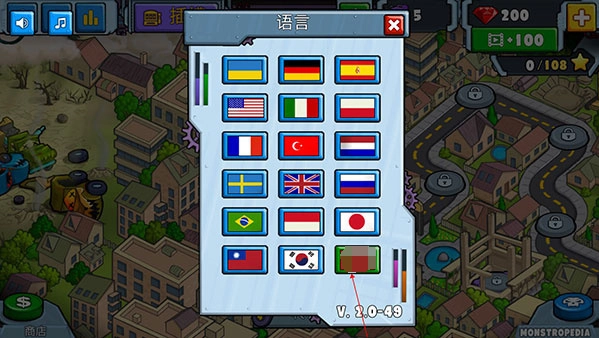 3、进入后,找到中国国旗并点击选择,界面就会切换为中文显示。