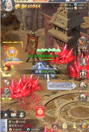 这种战斗方法能把小怪聚集到一起消灭,效率也会更高。因为“神剑破”技能的冷却时间比较久,玩家需要多运用“雷火杀”以及幻化角色的合体技能。特别是合体技能,释放一次就能直接秒杀五个敌人,务必把握好使用的时机。