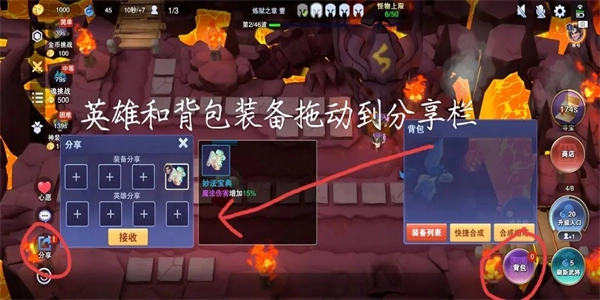 打开分享栏后,我们可以把自己的英雄和装备拖到分享栏里,这样队友就能拿到这些分享的内容;反过来,自己也能领取队友分享的英雄和装备,操作方式是一样的。