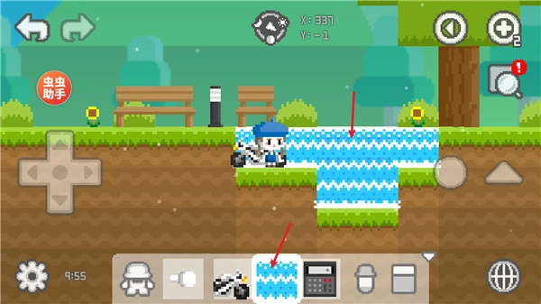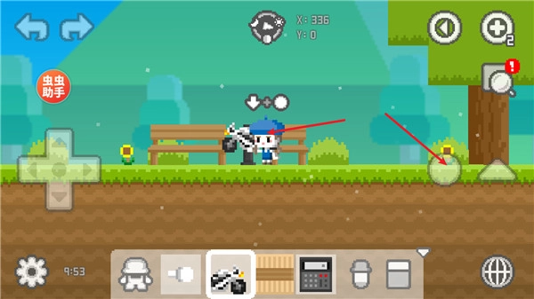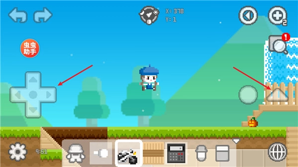 1、中左侧的方向键可用于控制移动,右侧的三角形图标则是跳跃功能键。