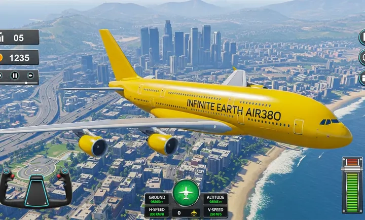 2、我们为您准备了丰富多样的飞行场景供探索。您可以飞越壮丽的雪山岛屿、繁茂的绿色地貌、酷热的沙漠以及辽阔的都市,所有这些都通过生动细腻的画面鲜活呈现。每条航线都设有独特的挑战,让您的飞行体验始终充满新鲜感与吸引力。