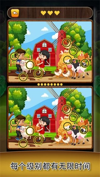 3、在找茬的过程中,感受其中的乐趣魅力,玩家会看到不同的图片,图片上的不同之处数量各不相同,找到这些不同之处就可以通关。