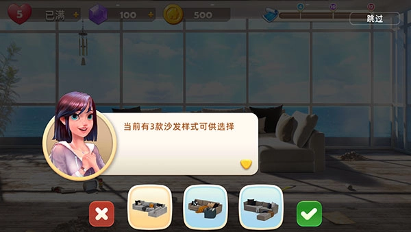 3、目前有3款沙发款式可供挑选,选好后点击右侧的对勾就行。