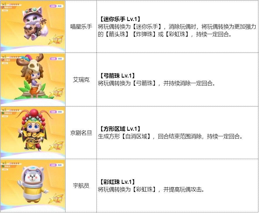 3、盲盒里的每个角色都有独特技能,而不同关卡也会产出各具特色的内容哦。