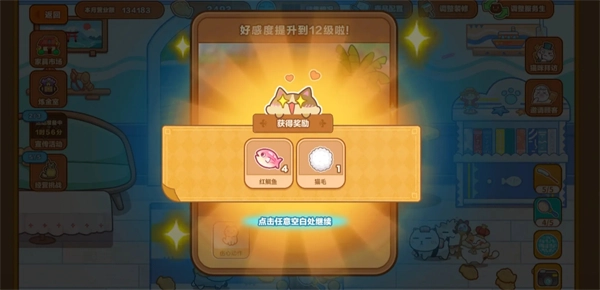 3、给小猫梳毛或者陪它玩逗猫棒,大概率能获得猫毛和红鲷鱼呢!还能提升好感度让关系升级哦!