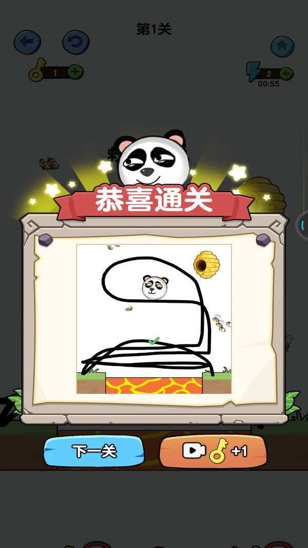 1、玩法十分简单又有趣,你只需在画面中画出各类图案,以此来保护里面的熊猫狗头;