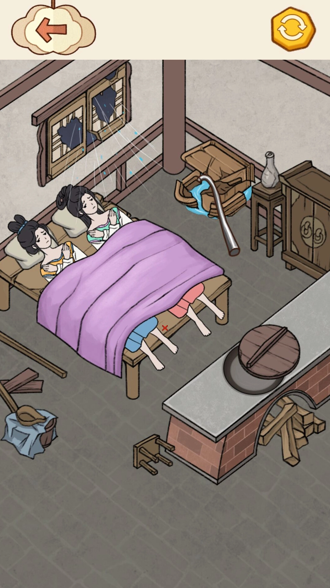 1、首先,玩家要明白这一关卡的目标是让小姐姐暖和起来,同时让房间既不漏风又能保暖。首要步骤是把木板拖到门窗处将其封住。