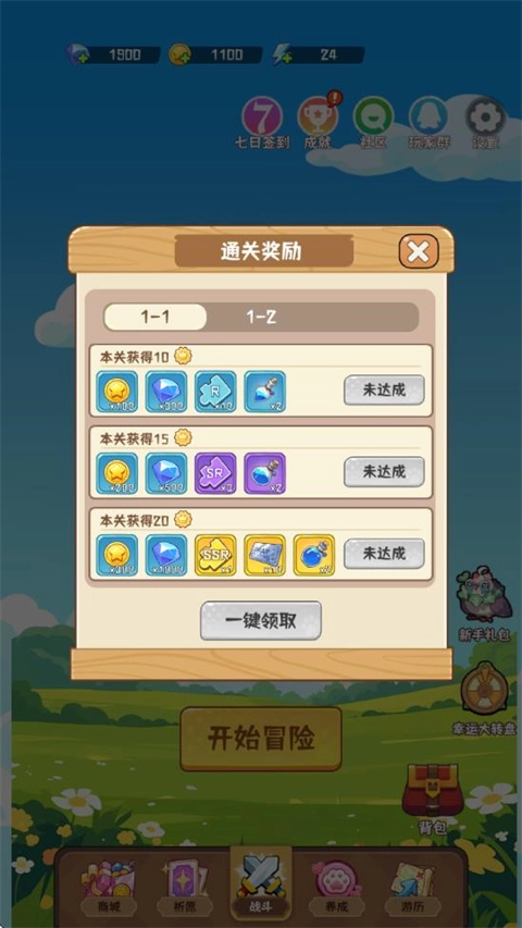 1、进入后点击主界面的开始冒险进行闯关。