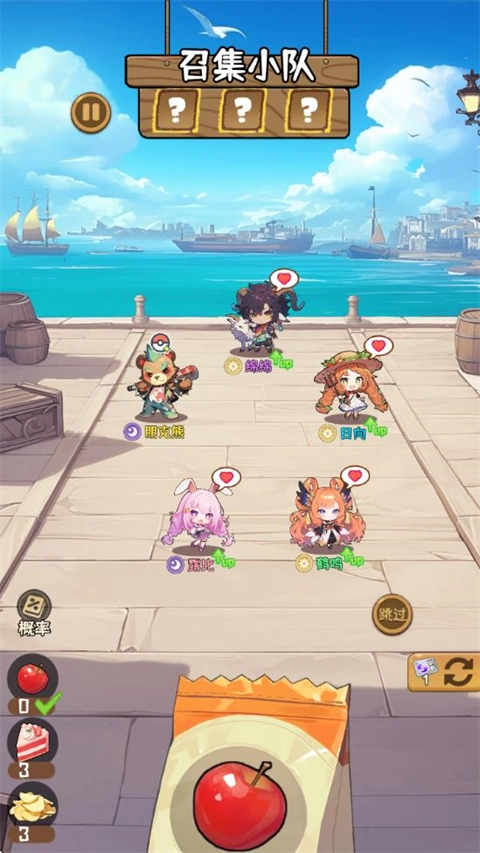2、进入关卡后,你可以通过消耗食物来招募队员,不同种类的食物能够招募到的角色各不相同。