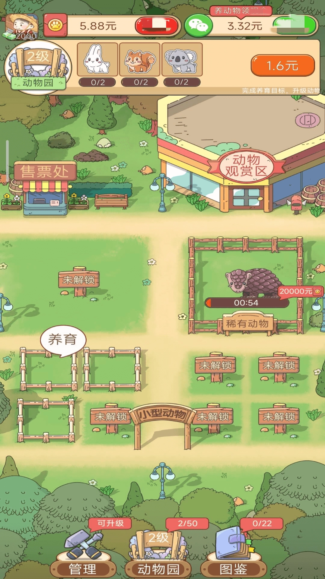 《动物园首富》是一款趣味十足的动物园经营模拟游戏,围绕动物园主题展开,玩家需要管理各式各样的动物,通过合成玩法逐步解锁更多动物的养殖权限,吸引游客前来参观,从而获取更多红包奖励——解锁养殖的动物种类越多,获得的红包就越丰厚。此外,玩家还能在游戏中学习和了解各类动物知识,欢迎大家前来体验,开启一段奇妙的动物知识探索之旅。
