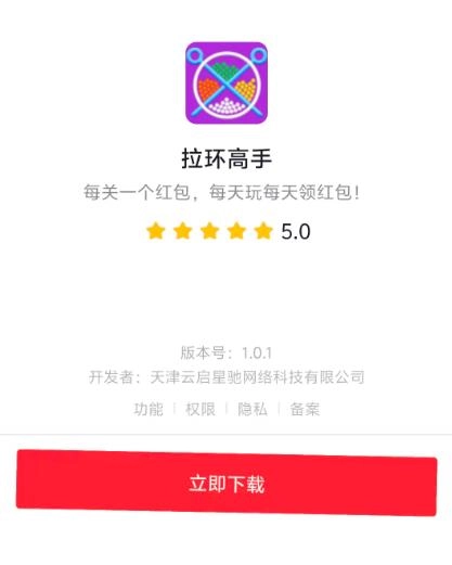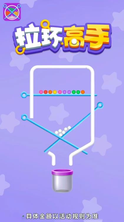拉环高手是天津云启星驰网络科技有限公司全新推出的一款休闲趣味创新拉环益智闯关小游戏,玩家只需看准时机,轻轻拉开拉环,操作简单,上手容易。游戏中的小球颜色丰富,倾泻而下的效果非常绚丽,给玩家带来视觉上的享受。感兴趣的话,可以叫上小伙伴们一起玩拉环高手赚零花钱哦!