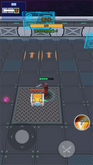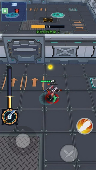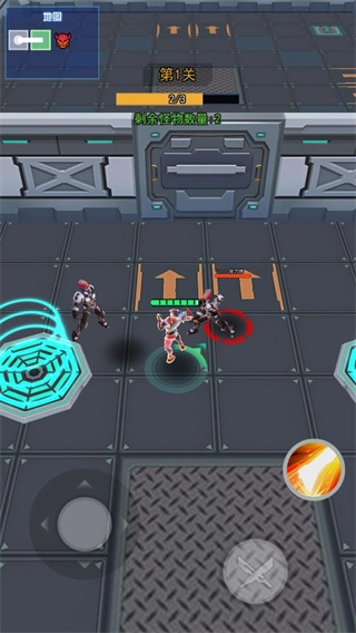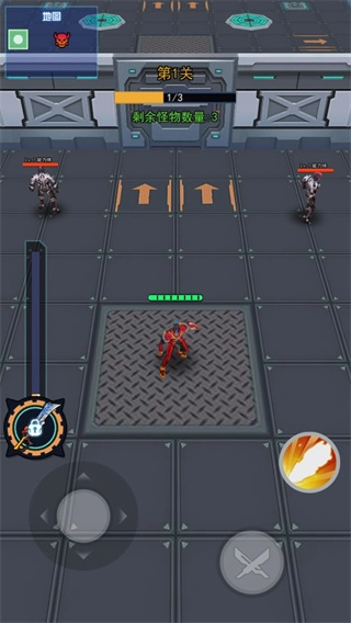 3、操作非常简单,左边控制铠甲的方向,右边负责攻击。