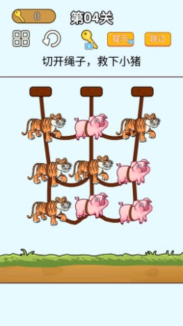 玩家的任务核心是切断绳子,游戏设定以物理元素为基础。你只需滑动手指切断绳子,就能解救被绳子束缚的小猪。不过要注意,千万别误放老虎,否则它会吃掉小猪!