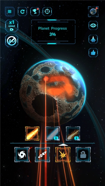 2、进入后,玩法十分简单,玩家要借助下方的激光和道具来破坏星球;
