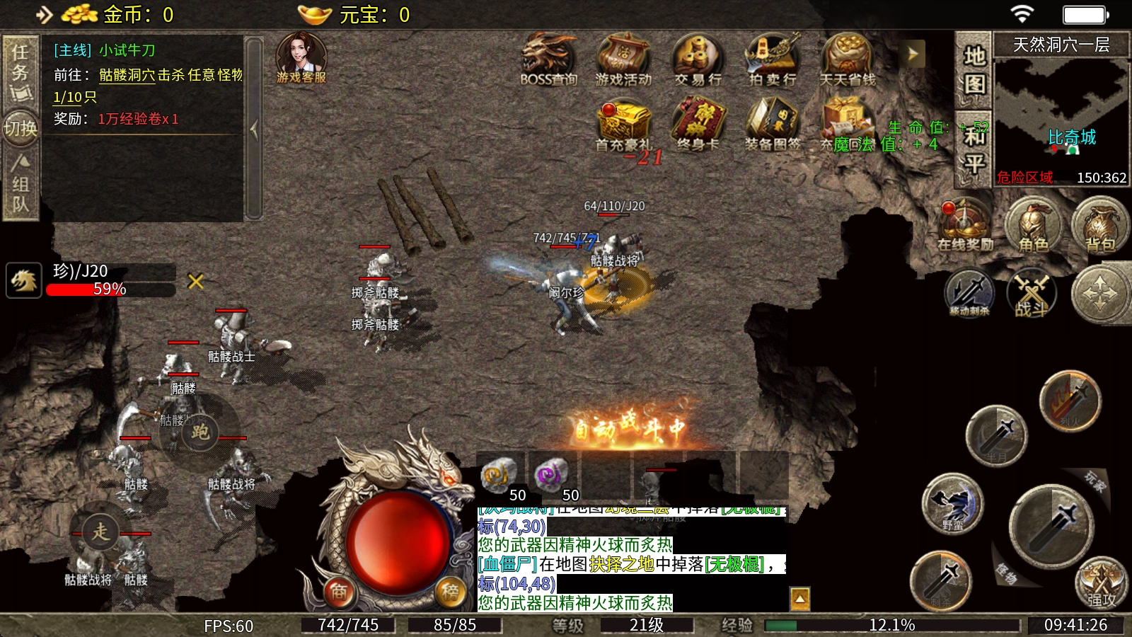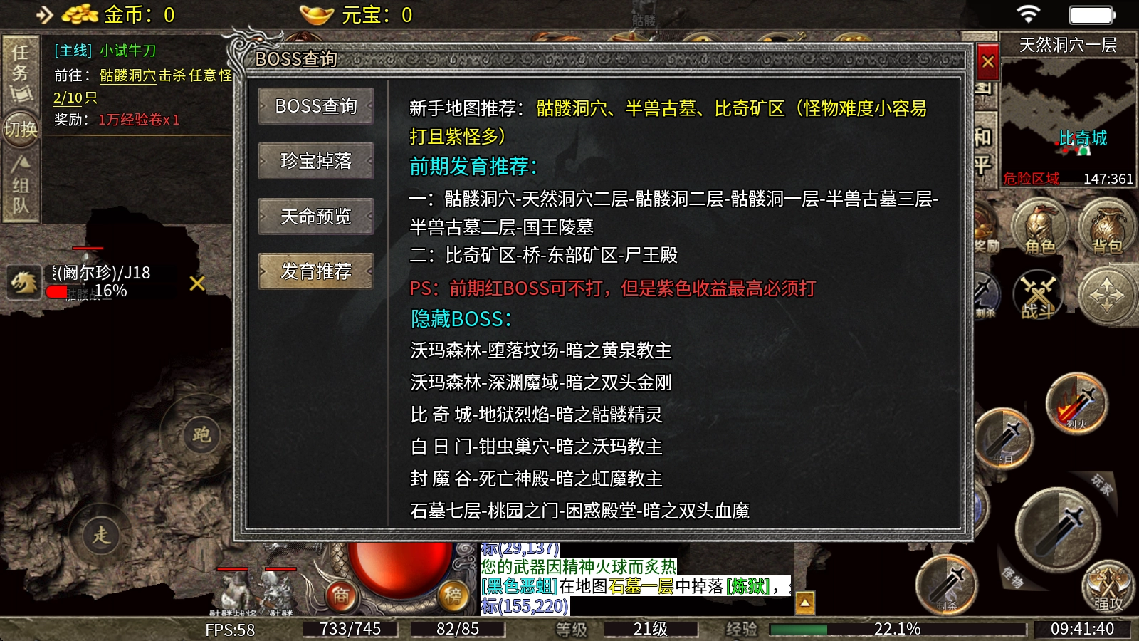 1、新手地图推荐:骷髅洞穴、半兽古墓、比奇矿区,这些地图的怪物难度较低,不仅容易击杀,而且紫色怪物的数量也比较多。