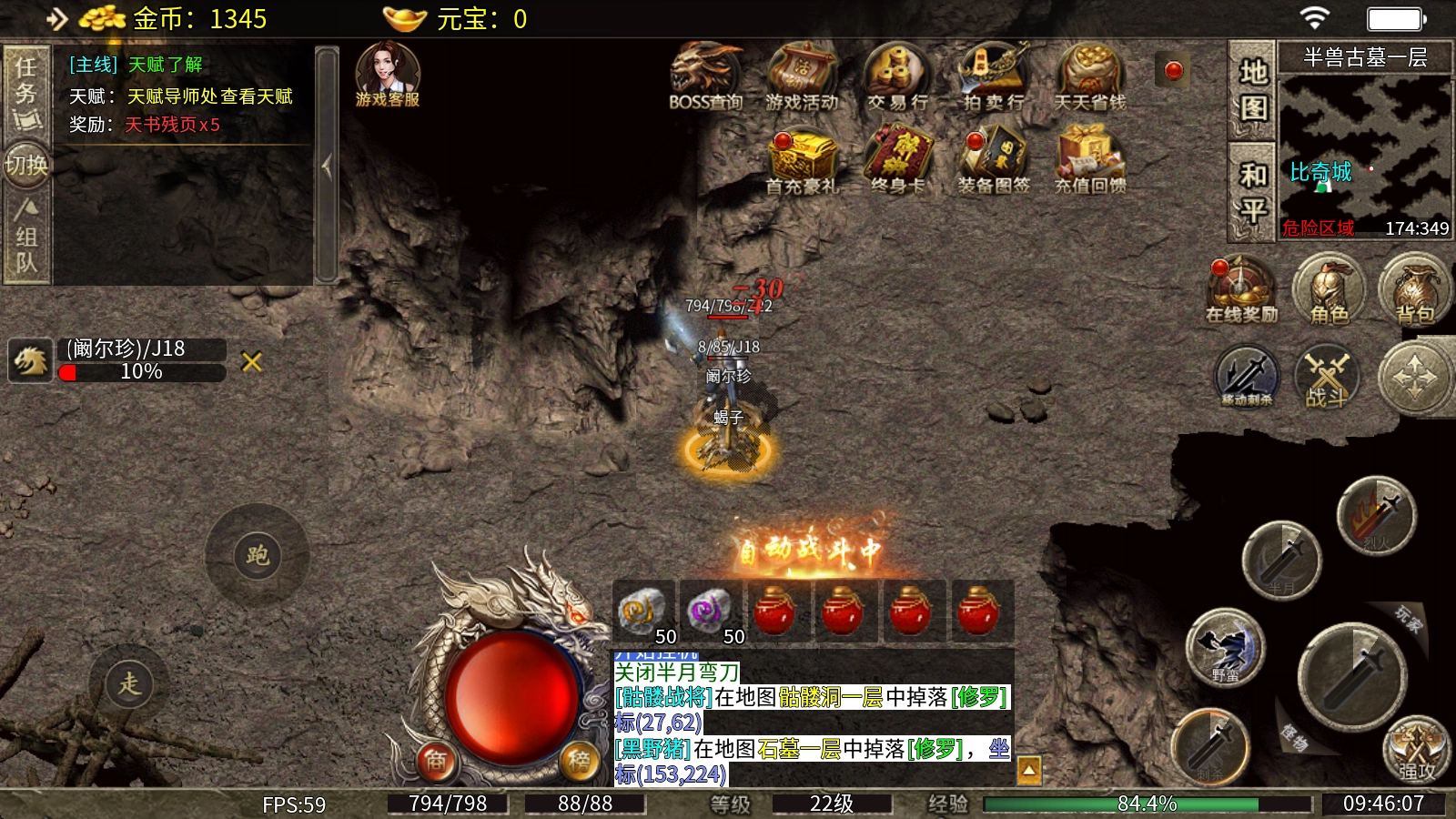 (3)、比奇城:地狱烈焰-暗之骷髅精灵