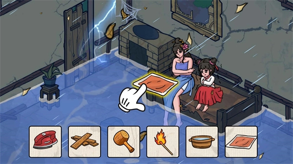 1、首先得把漏风的窗户修缮好,直接点击物品栏里的木板,就能简单地钉上去。
