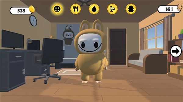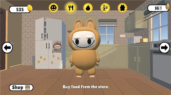 1、在厨房、客厅、浴室等不同场景里,玩家能够带着拉布布在其中漫步。