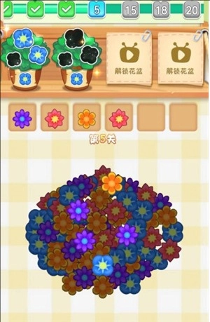 2、玩家会遇到更多不同种类的花朵,合成要求也会更具挑战性,这将对玩家的策略思维与手眼协调能力形成考验。