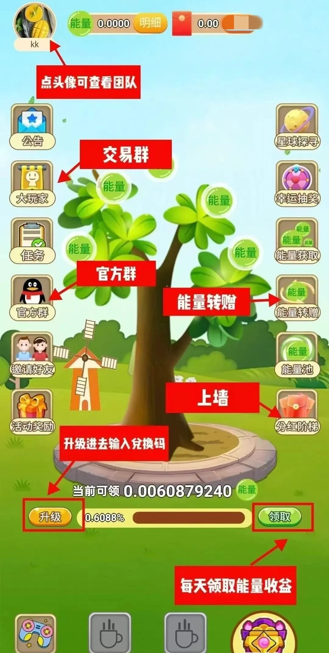 参与趣味试玩、日常互动,不用额外投入就能轻松攒能量!比如完成试玩任务、给果树浇水施肥,这些轻量操作就能让你躺着薅能量、攒资源~