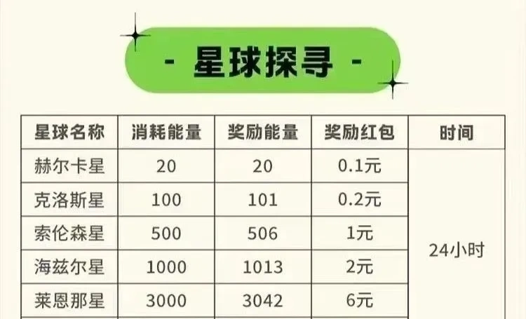 消耗能量“穿梭星球”,边玩边赚!完成挑战即可收获额外能量与奖励,24小时限时任务(例如“海兹尔星”)更有翻倍惊喜~