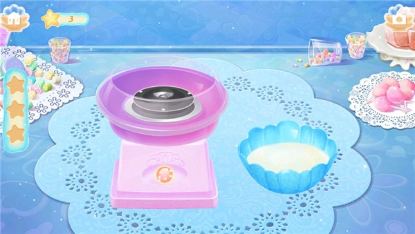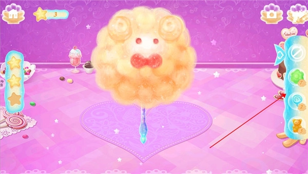 3、可把糖粉等材料放进棉花糖机来制作棉花糖,另外要拖动容器去接住装饰物,同时避开鲨鱼。