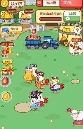 《鸡场达人》是一款操作简单的经营类游戏,玩家在游戏中可以培育不同品种的小鸡,每种小鸡都需要通过合成来解锁。只要不断扩大自己的养鸡场规模,就能获取丰厚的红包奖励,整个游戏过程的操作都十分轻松。