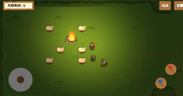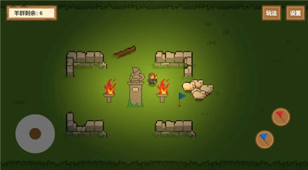 1、操作方式类似平面动作类游戏,通过摇杆操控主角移动,插旗操作能够指挥队友或羊群进行移动。