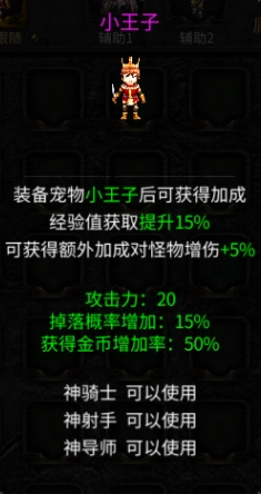 小王子宠物——可通过购买礼包获取,能永久提升15%的经验值,(建议购买)
