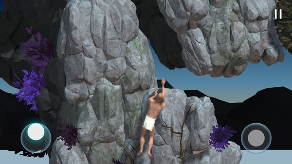 2、玩家需使用两侧轮盘操纵角色向上攀岩;