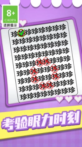 这款游戏的每一关都布满了密密麻麻的文字,对玩家的视力和观察能力是不小的考验,你需要快速找出不同的汉字。游戏包含数十个可玩关卡,能让你的体验趣味十足,特别适合在感到无聊的时候用来消遣。