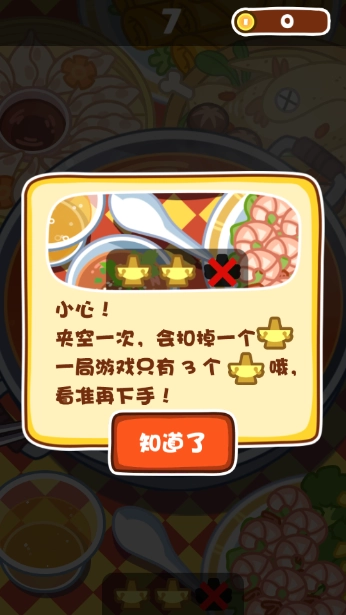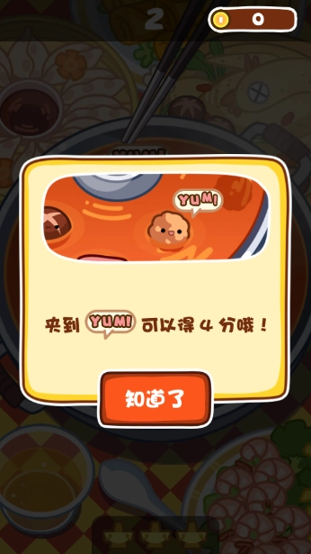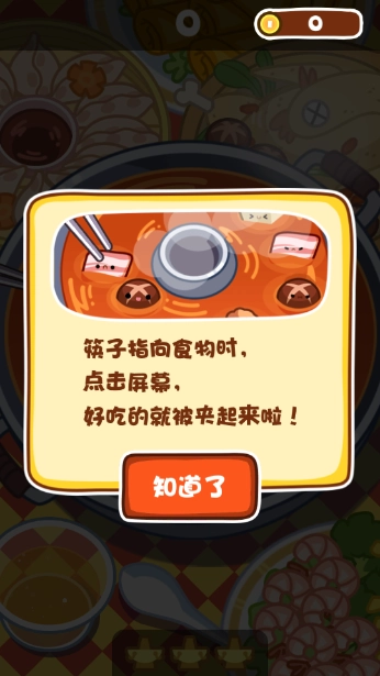 1、玩法十分魔性,玩家得操控筷子从火锅里夹取食材,筷子还会在火锅上方扭来扭去地跳转。