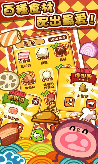1、欢快喜庆的背景音乐和画面适配度很高,能满足玩家对各类火锅食材的需求。