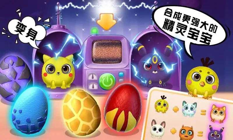孵化每一颗宠物蛋,就能收集到各种萌萌的宠物宝宝,它们的可爱程度简直是层层递进!把两只萌宠放进神奇的宠物融合机,就能生成一枚全新的宠物蛋。孵化这枚蛋,就能解锁更可爱的宠物,把它们都收入囊中吧!
